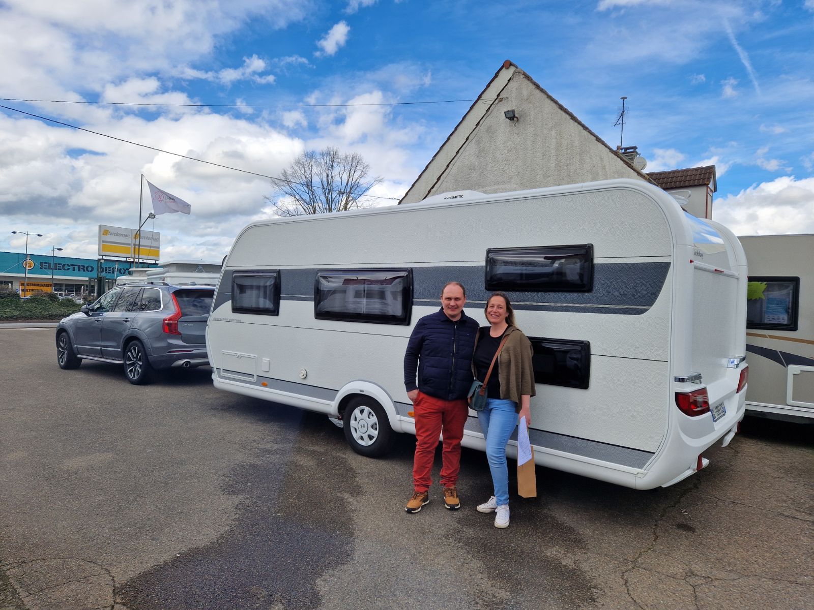 A,C,L 78 , Accueil , Compétence , Loyauté Au premier contact on s'aperçoit que l'on a affaire à des professionnels sérieux, après avoir acheté une Sterckeman alizé il y a deux ans, lors d'une visite nous avons eu le coup de cœur pour une Hobby UFF540 que nous venons de réceptionner avec le déplace caravane, les vérins électriques, la clim, et une caméra arrière pas un gadget mais bien utile pour voir derrière la caravane en roulant ou en manœuvres, Merci Daniel, Tony et à toute l'équipe , leur maître mot satisfaction du client Clients satisfaits Chantal & Jean Louis B du 41